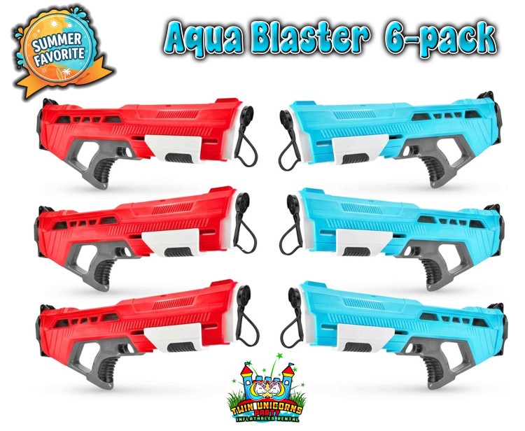 Aqua Blaster 6-Pack: six matching water blasters ready for instant splash battles. Easy to fill and pump, sturdy for outdoor play, and perfect for parties, field days, or poolside fun—just add water and let the soaking begin.
