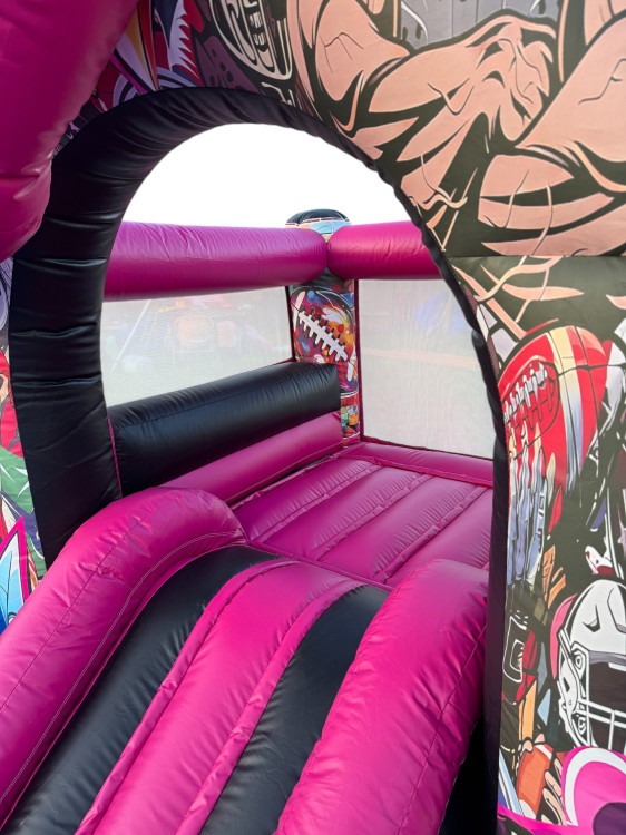A low-profile, toddler-friendly inflatable bouncer with a short, cushioned slide — soft padded floor and mesh sidewalls for easy supervision, gentle bounce for little kids, and a compact footprint that’s perfect for backyard parties and playdates (comfortably fits about 3–5 toddlers).